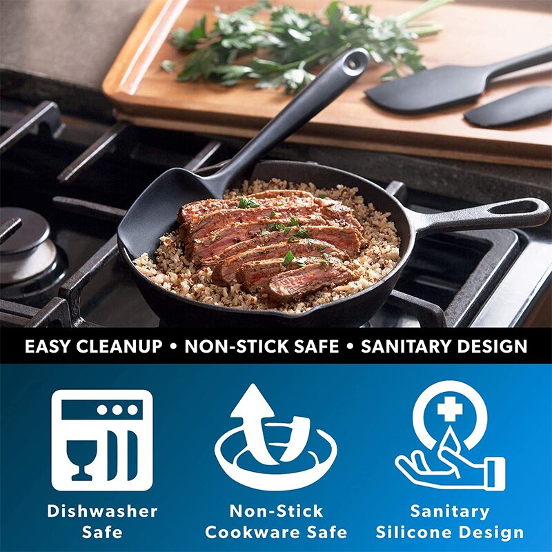 3. CHOOSING THE VERSATILE SPATULA SET – silicone spatula set are designed to meet the demanding requirements of chefs and bakers, which is prefer for mixing, scooping, scraping. You get everything you need at the first time.