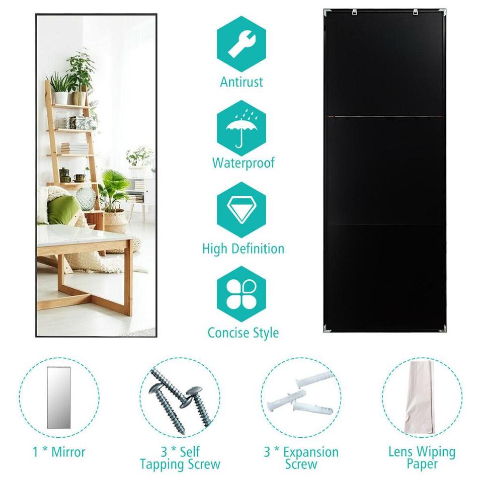 Are you finding a full-length mirror for your bedroom or cloakroom? Our stylish and functional mirror is perfect as a decorative element for any room in your house. This premium rectangle mirror is surrounded by an aluminum alloy frame and the large glass mirror is backed by MDF material for reinforcement and stability. What’s more, the mirror is made of float glass to avoid distortion and equipped with an explosion-proof membrane to provide protection. Simple but elegant design increases the aesthetic feeling of the mirror and well-suited for home décor. Besides, it can be hanging or leaning according to your preference.