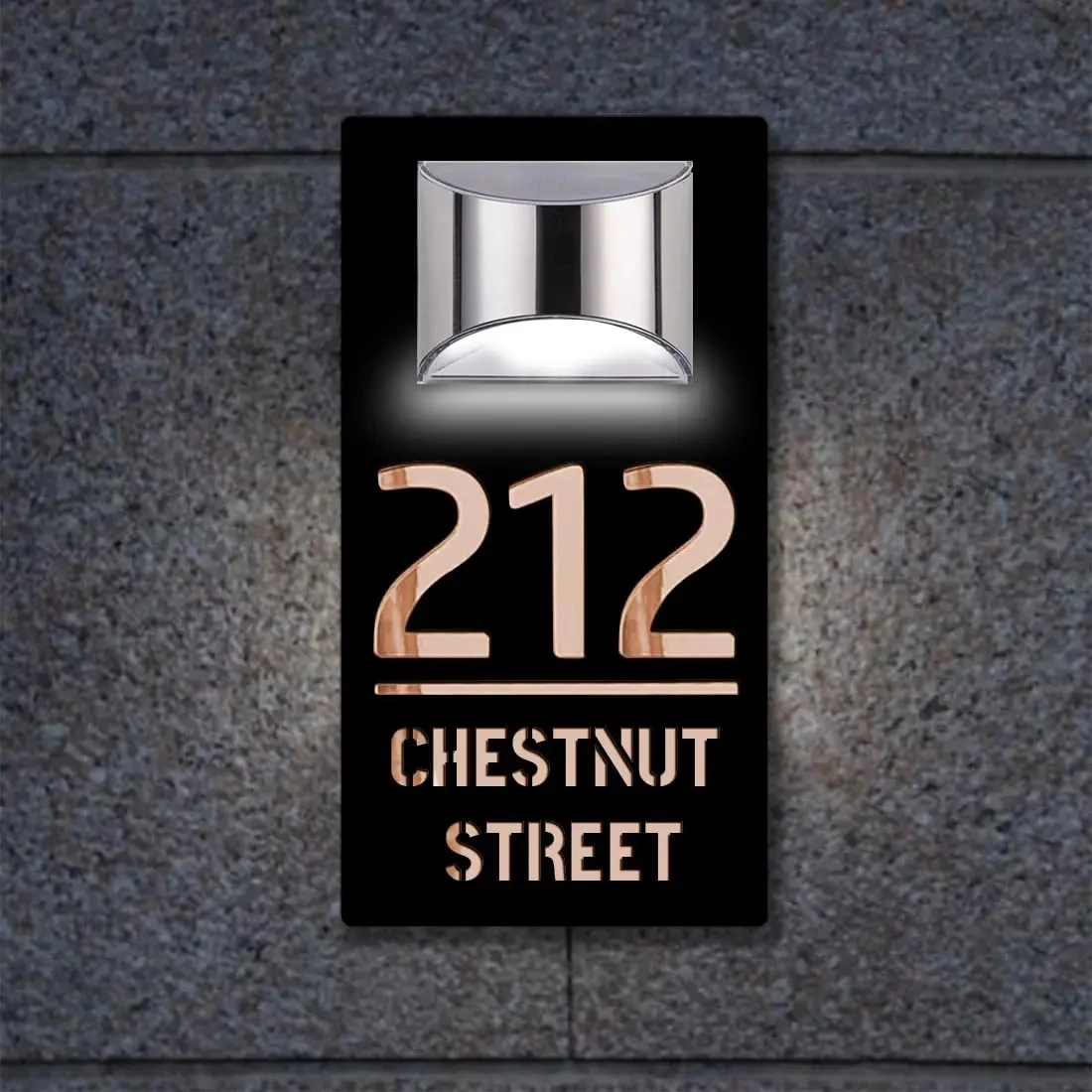 Customized House Sign Solar LED Light Modern Residential Address Sign 3D Laser Cut Address Plaque Outdoor Street Name Door Plate