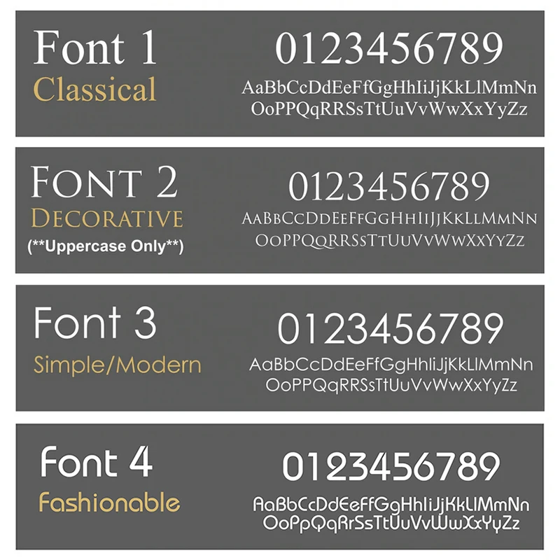 The color of backing panel (Text): Gold, Silver, Rose Gold, White, Yellow, Blue, Orange etc.