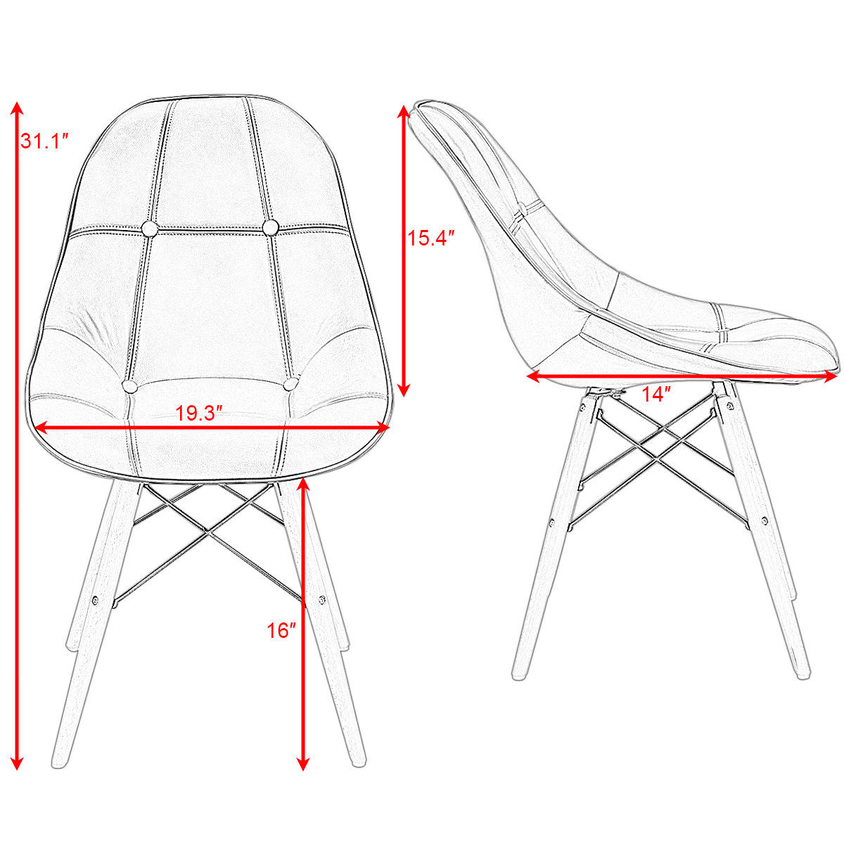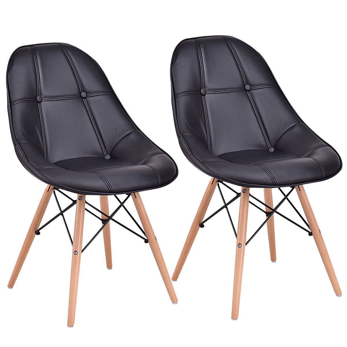 This is our dining chair set. It is an ideal seating for your home. This features its good looking and practical use. Contemporary and retro design enable it becomes a good complement for any decoration. Wooden legs and durable metal rods provide strong support for the whole chair and makes it has large capacity. The premium PU leather padded seat ensure the chair can serve longer time. Non-slip foot pads under legs can perfectly prevent the chair from slipping and protect your floor from being scratched. It will be worthy of your choice!
