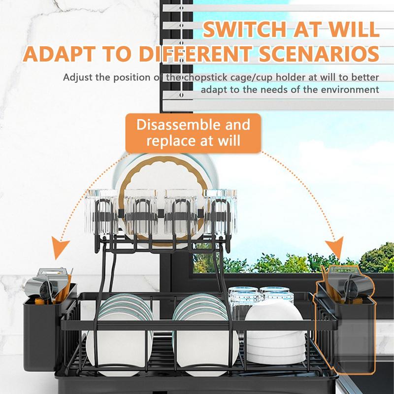 The 2-tier and detachable Dish Rack uses a stable material called carbon steel with a black matter finish, and it has a rapid drainage system to help you dry.