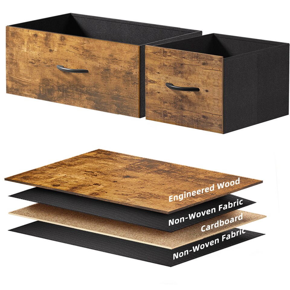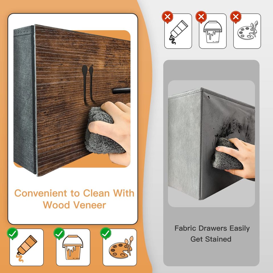Rustic brown wooden top and front makes this storage dresser stay classic yet very chic. This rustic dresser suits all living spaces and purposes, prepare slippers, towels in guests room, store plushies and diapers in nursery, or use this fabric drawer dresser at doorway to manage everything you want.