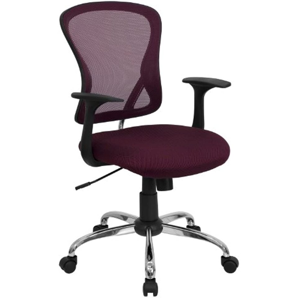Having the right chair in your workspace is essential for your performance and well-being. Investing in a good task chair increases productivity, promotes good posture and gives a professional look to any office. This burgundy task chair is adjustable to accommodate many different body types. The breathable mesh back allows air to circulate to keep you cool. The colorful, generously padded mesh seat will add a vibrant, lively look to your space as well as keep you comfortable. A mid-back office chair offers support to the mid-to-upper back region. The waterfall front seat edge removes pressure from the lower legs and improves circulation while the arms take pressure off the shoulders. Chair easily swivels 360 degrees to get the maximum use of your workspace without strain. The pneumatic adjustment lever will allow you to easily adjust the seat to your desired height. The chrome base adds a stylish look to complement a contemporary office space. With its attractive styling and versatility, this chair is an excellent choice for the office, dorm, classroom or home.
