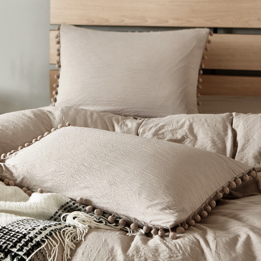 3 Pieces Set Kit Duvet Cover Pillowcase Cotton Solid Color Balls Simple Home Decor Twin Queen King