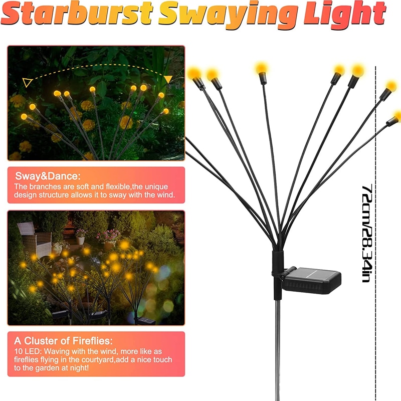 ❤ [Solar driven and waterproof] It is specially designed to withstand extreme weather conditions, rain, hail and snow. You just plant solar firefly lamps in your garden. When the wind blows, you will see the solar lamp "dancing".